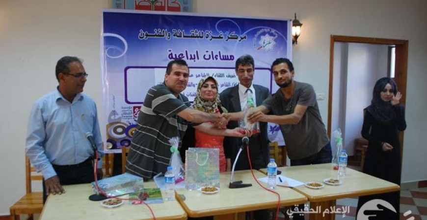 نظم مركز غزة للثقافة والفنون ،مساء اليوم ، امسية شعرية بعنوان " أوراق مبللة بالموسيقى " ضمن مبادرة مساءات إبداعية بدعم وتمويل من برنامج الثقافة والفنون بمؤسسة عبد المحسن القطان بحضور ضيف اللقاء الشاعر/ عثمان حسين والشاعرة الشابة/ إيناس سلطان والشاعرالشاب/حسام معروف  وأدار اللقاء الشاعرة الشابة/ديانا كمال بحضور حشد من نخبة المثقفين والمبدعين والأدباء والكتاب.، .