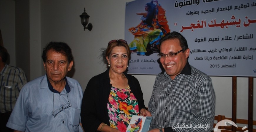 نظم مركز غزة للثقافة والفنون مساء اليوم ،حفل توقيع الاصدار الجديد للشاعر علاء الغول بعنوان "  حين يشبهك الغجر " بمشاركة ضيف اللقاء الشاعر /عثمان حسين عضو الامانة العامة لاتحاد الكتاب وادارت اللقاء الشاعرة/ديانا كمال بحضور حشد من الكتاب والادباء والمثقفين مساء اليوم في قاعة المسحال. ورافقهم بعزف العود والغناء الفنان المبدع أيمن أبو عبدو .