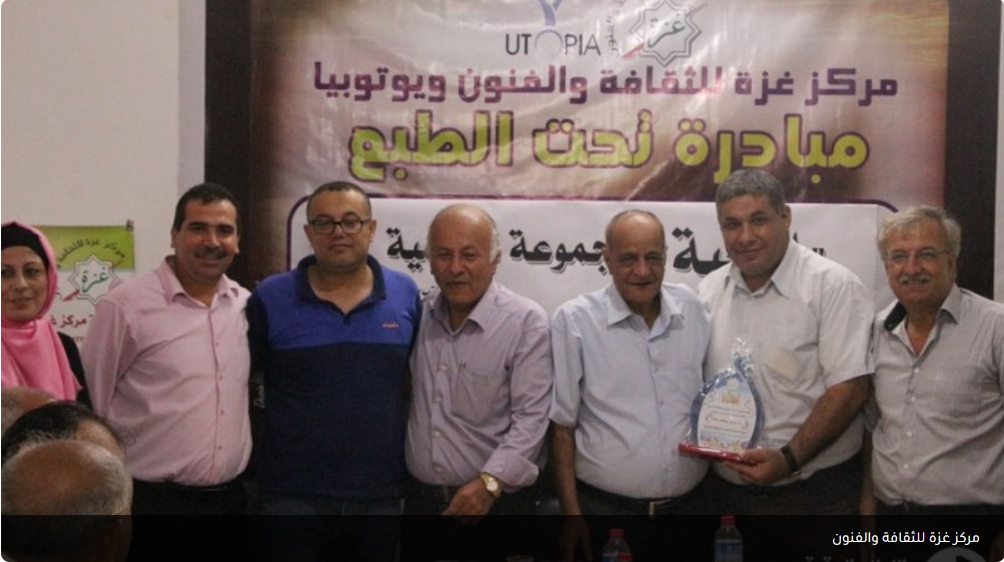 وفي ختام اللقاء، قدم مركز غزة للثقافة والفنون ويوتوبيا درعاً تكريمياً للكاتب رمزي عكاشة تشجيعا له بمشاركة الكتاب الحضور.